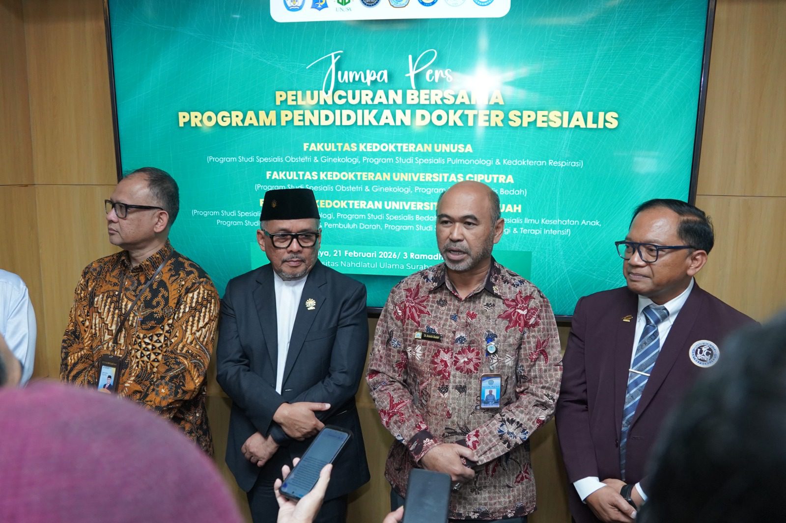 “Peluncuran bersama PPDS ini bukan sekadar pembukaan program studi, tetapi merupakan pernyataan komitmen bersama untuk menghadirkan pendidikan dokter spesialis yang adaptif, kolaboratif, dan berbasis keunggulan institusi masing-masing. Unusa bangga menjadi tuan rumah momentum penting ini, karena kolaborasi adalah kunci untuk menjawab tantangan layanan kesehatan Indonesia ke depan, terutama di era transformasi sistem kesehatan nasional.”