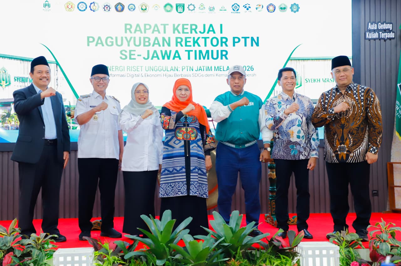 Kediri (Aksaraindonesia.id) – Gubernur Jawa Timur Khofifah Indar Parawansa meluncurkan Riset Kolaborasi Perguruan Tinggi Negeri (PTN) Jawa Timur Melaju 2026 dalam Rapat Kerja I Tahun 2026 Paguyuban Rektor PTN se-Jawa Timur di UIN Syekh Wasil Kediri, Rabu (15/4).