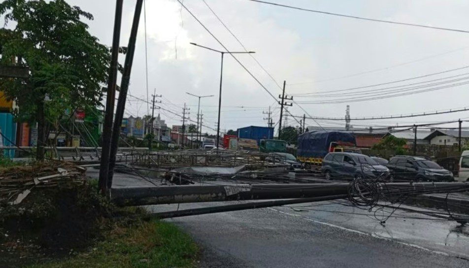 “Untuk pengguna jalan dari arah Geluran menuju Medaeng diimbau mencari jalur alternatif karena jalan tidak bisa dilewati akibat tiang listrik yang roboh,” ujar Harry.