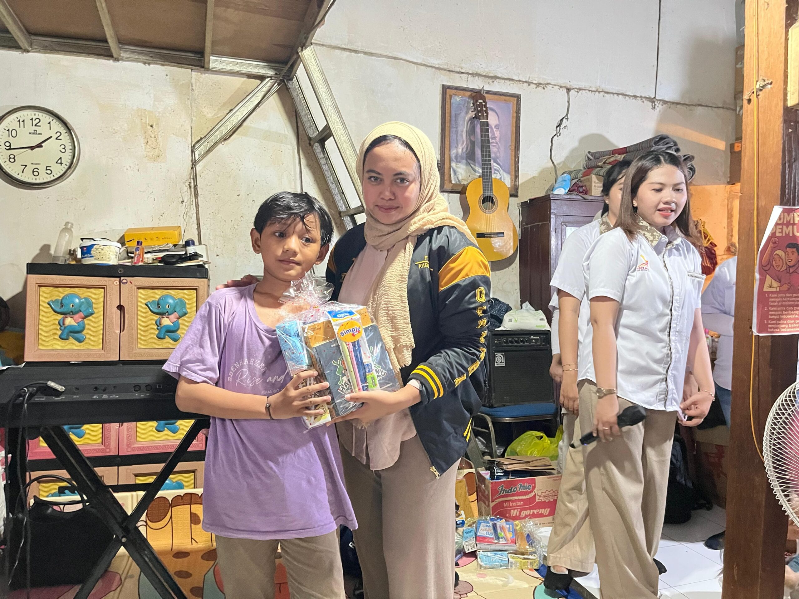 “Hari ini, kami membagikan alat buku tulis, makanan bergizi dan susu kepada anak-anak kali Jagir sungai Surabaya sebanyak 74 anak,” imbuhnya.
