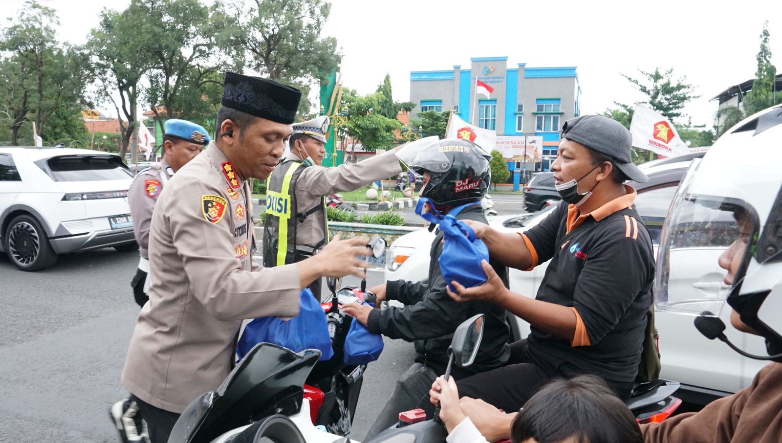 “Kami membagikan 250 paket takjil sebagai wujud kepedulian kepada masyarakat, khususnya bagi pengendara yang sedang menjalankan ibadah puasa. Semoga ini bisa membantu mereka yang belum sempat berbuka di rumah,” ujar Kombes. Pol. Christian Tobing.