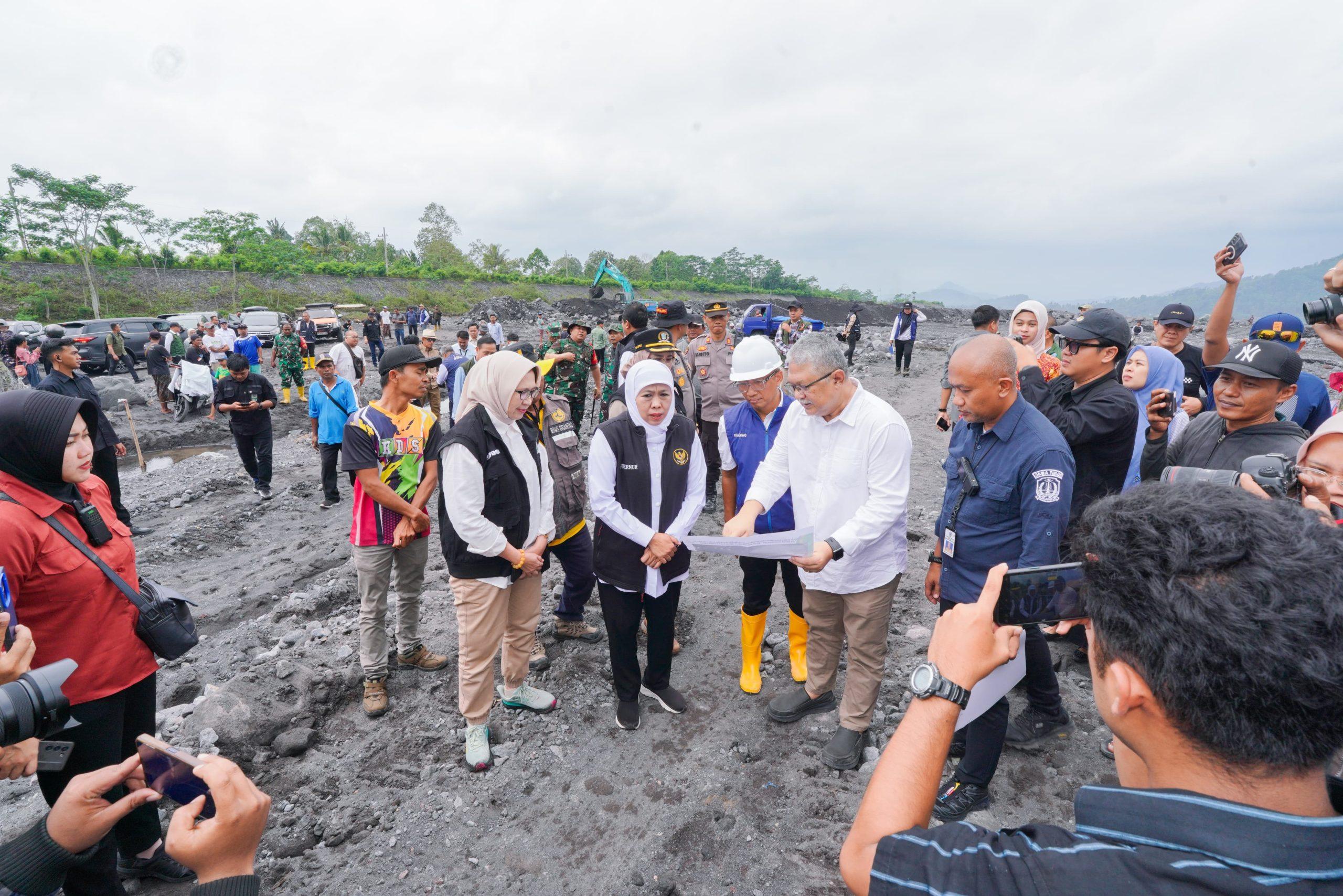 Tinjau Perbaikan Tanggul Pasca Banjir Lahar Dingin Semeru, Gubernur Khofifah Targetkan Rampung Dalam Tiga Bulan