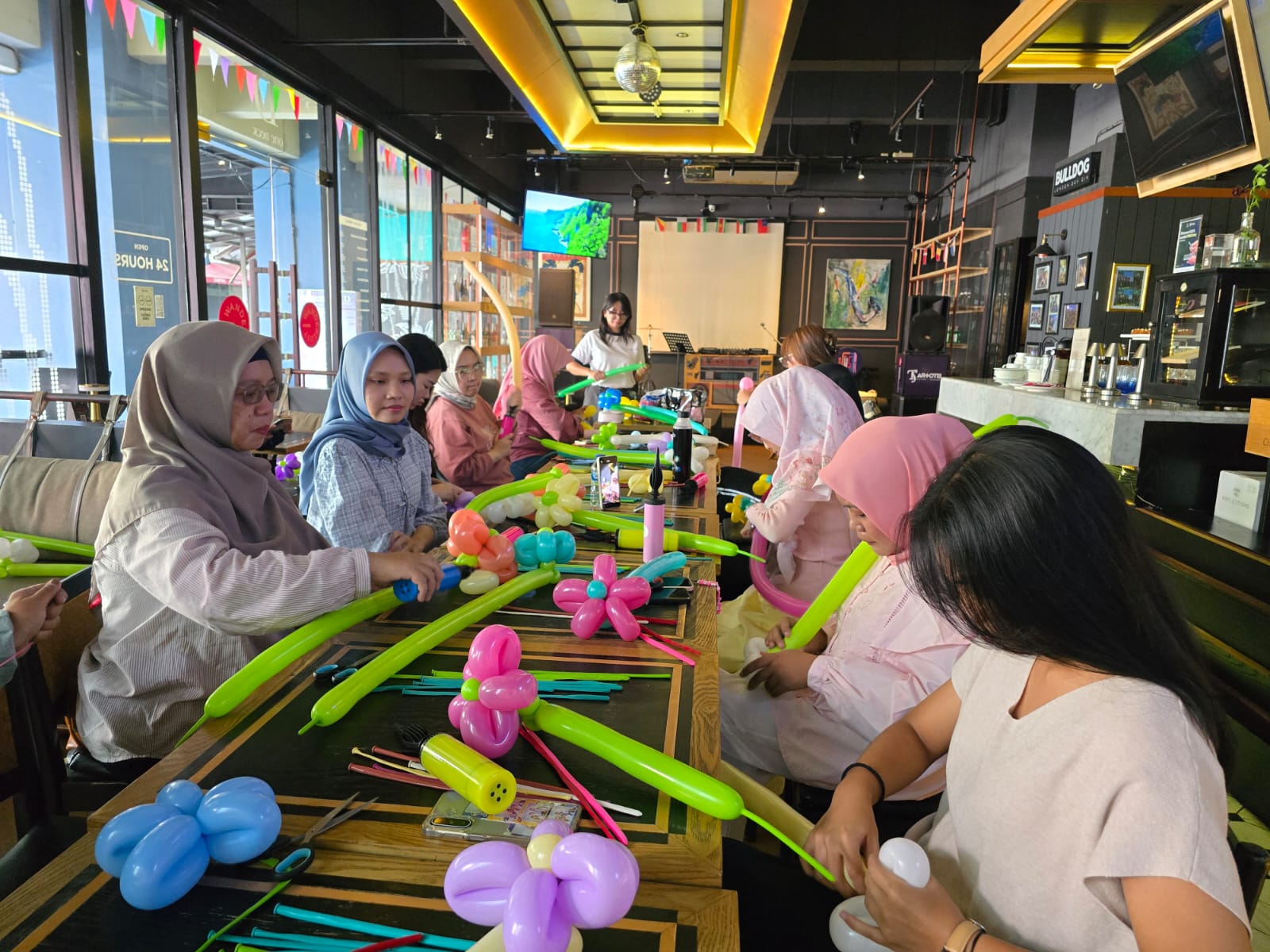Meski tampak sederhana, merangkai buket balon membutuhkan ketelitian tinggi. Sedikit kesalahan saja bisa membuat balon meletus, sehingga peserta harus teliti mengikuti instruksi. Suasana workshop berjalan hangat dan penuh gelak tawa, terutama ketika terdengar bunyi letusan balon yang memecah kesunyian.