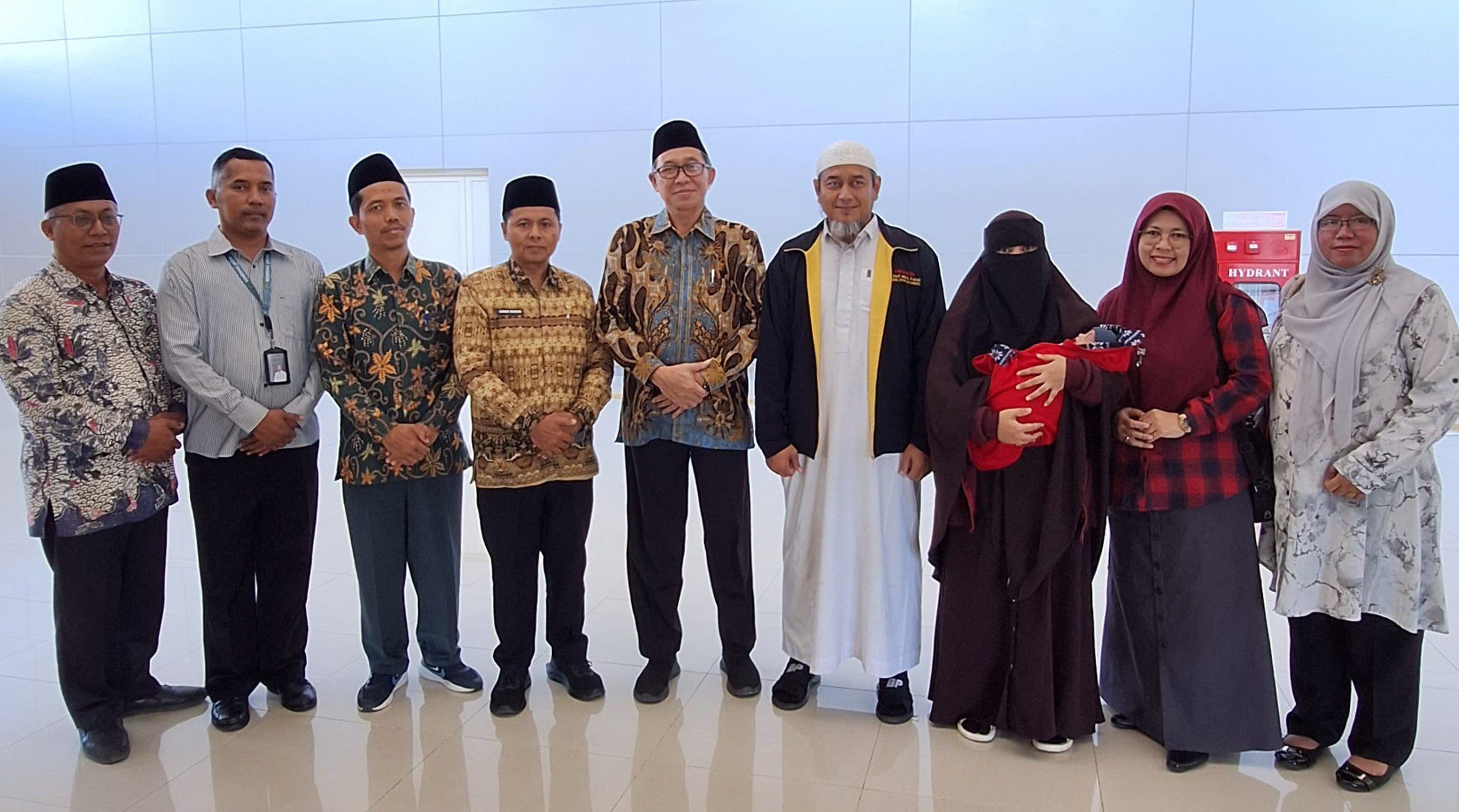 “Alhamdulillah, hari ini datang dua jemaah haji Embarkasi Surabaya beserta bayinya dengan selamat. Kami turut berbahagia atas kepulangan jemaah di Tanah Air dengan selamat tanpa kurang suatu apapun. Kepulangan jemaah ini semua ditanggung pemerintah,” tutur Muh. As’adul Anam.